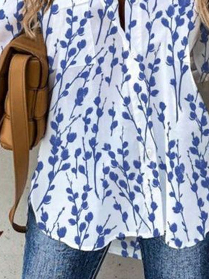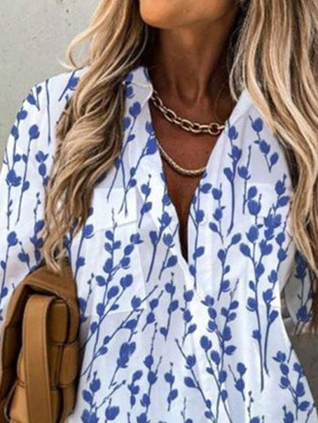 • Casual Fashion Printed Lapel Long Sleeve Shirt