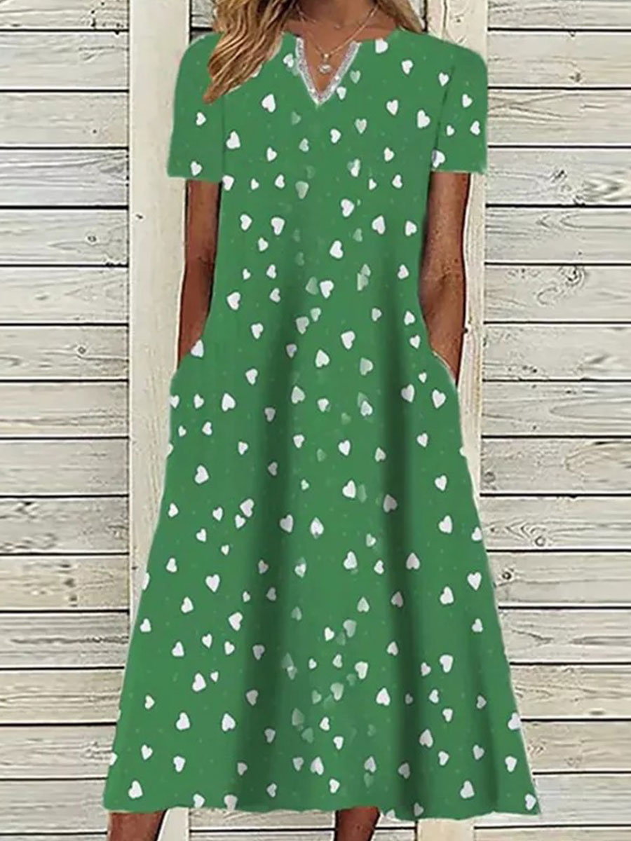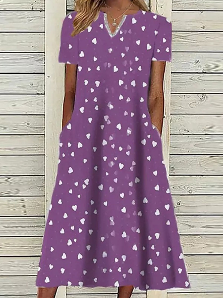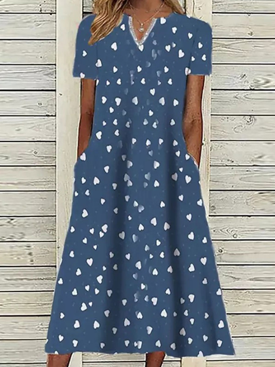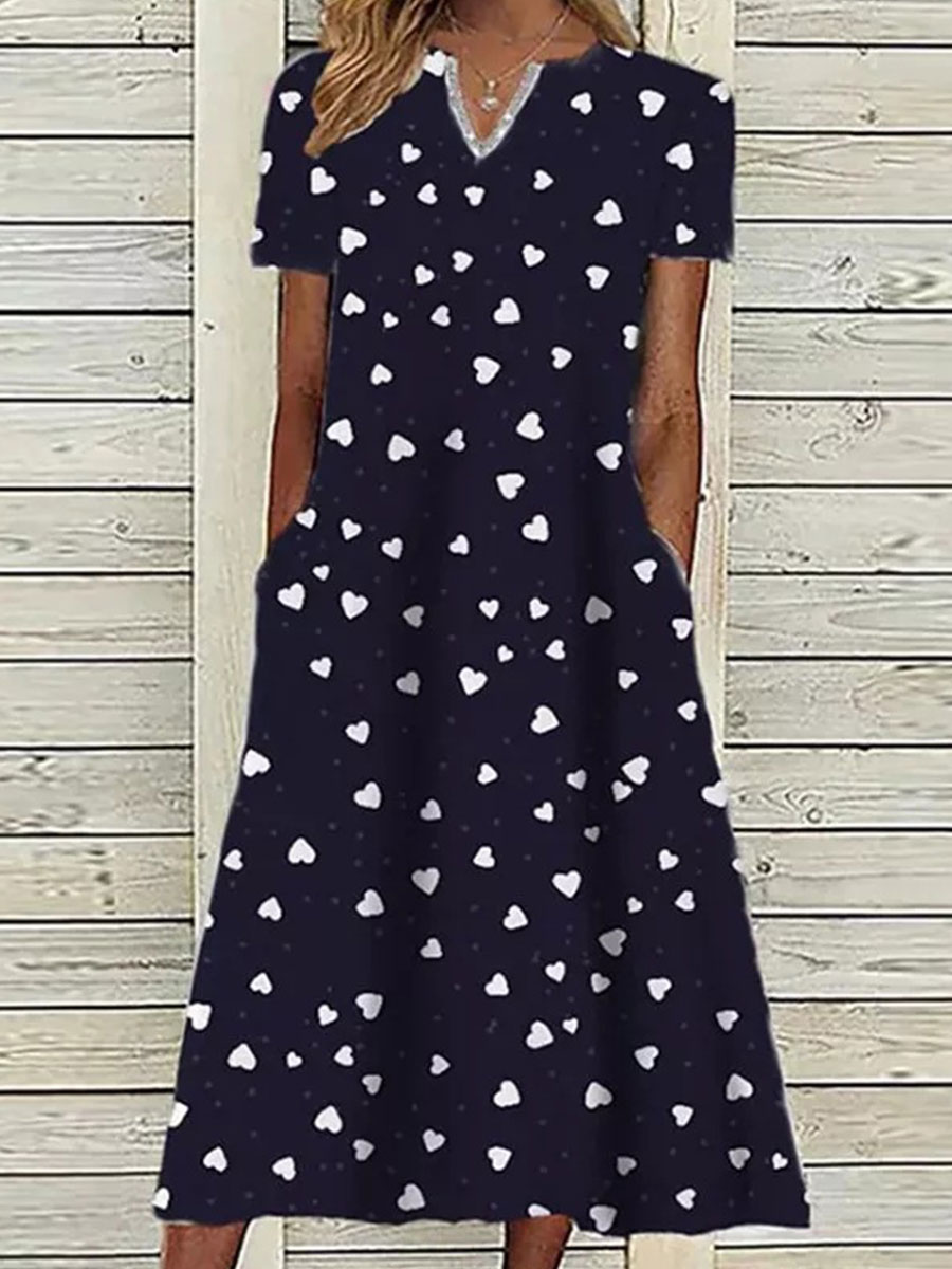 Fashion Urban Casual V-neck Short Sleeve Love Print Dress